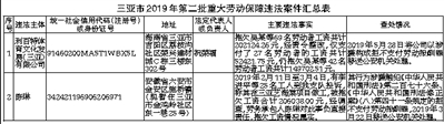 附件:三亚市2019年第二批重大劳动保障违法案件汇总表
