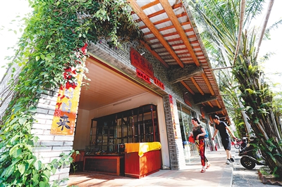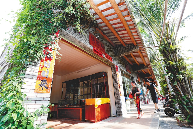 前有水田,后靠青山,一幢幢清代传统建筑风格的老宅坐北朝南,七纵三横的巷道延伸交汇,勾勒出“探花故里”定安县龙湖镇高林村的古朴与雅致。入村,一株百年榕树舒枝展叶,被打磨得幽幽发亮的青石板路在脚下铺开,牵引着游人一步步寻古探幽。