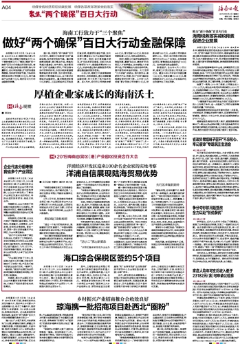 海南日报 确保全省经济持续健康发展 确保各项改革政策全面落实 聚焦“两个确保”百日大行动 004 2019-09-041 2019年09月04日 星期三