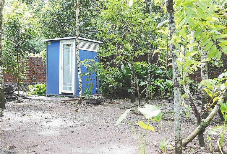 9月4日上午,海南日报记者在王有益家的小院看到,这座厕所外形类似市区的移动公厕,面积2.25平方米,除了便池、冲水水箱外,还安装了洗手池和淋浴喷头。在距离厕所约5米的地方,便是三级化粪池。