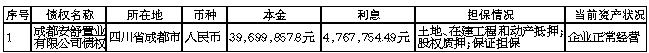 债权资产(包括债权项下的担保权益,截至2018年9月19日):