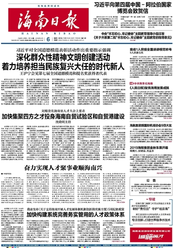 海南日报 头版 001 2019-09-061 2019年09月06日 星期五
