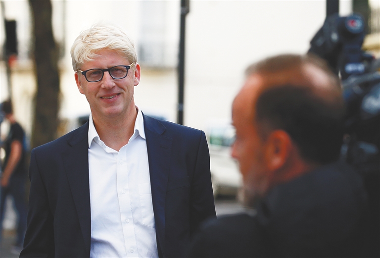 英国首相鲍里斯·约翰逊的胞弟、国务大臣乔·约翰逊5日借助社交媒体宣布辞职,同时辞任议员。乔自2016年英国公民投票决定“脱欧”以来坚决反对英国“脱欧”,他5日给出的辞职理由是,他不能继续在“家庭关系和国家利益之间”纠结。 新华社/路透