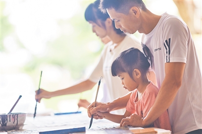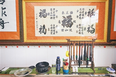 不仅是青年学生,90岁的王德义老人每天都要来书法屋练练字。“小时候没钱买笔墨,总是在沙地练字。如今虽然条件好了,但一个人练字孤单,在这里跟其他书法爱好者,特别是孩子们聚在一起很快乐。”王德义高兴地说。