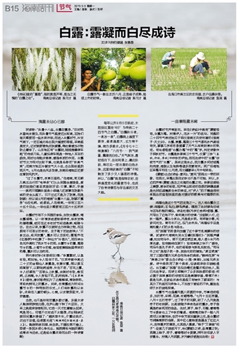 “过了白露节,夜寒日里热。”在海南,常见朝九晚五出行的“电单侠”们从头到脚全套装备,爱美的姑娘们甚至武装到牙齿:口罩、罩衣、手套……就两只眼睛处留条小细缝儿还被罩在防紫外线的安全头盔下。只不过这不是为了防寒,而是防晒!所以说9月的海南“白露十八盆,防晒不露身”也没毛病。或者说,人在海南,一年有三百六十五个日出,一年也至少需要有三百六十五次沐浴。