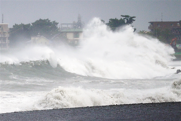 强台风“法茜”当地时间9日凌晨在日本千叶县登陆。台风登陆千叶县时,中心附近最大风速为每秒40米,瞬间最大风速达每秒57.5米。这是日本关东地区观测到的有台风统计以来的最强级别风力。图为在日本静冈,强台风“法茜”来袭前海浪汹涌。 新华社/美联