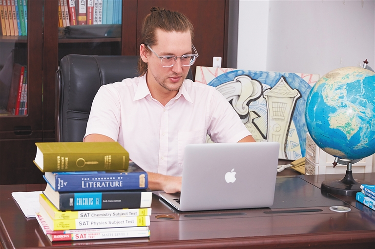 在生活中,塞缪尔略显腼腆,一旦走上讲台就变得严肃认真起来。“塞缪尔讲课逻辑严密、条理清晰,实用性、针对性都很强,他的课堂没有‘水分’。”近日,海南侨中国际部双语数学教师曾婕告诉海南日报记者,如今,塞缪尔打造的美式开放课堂教学效果突出,他也因此成为学校学生最喜欢的外教之一。