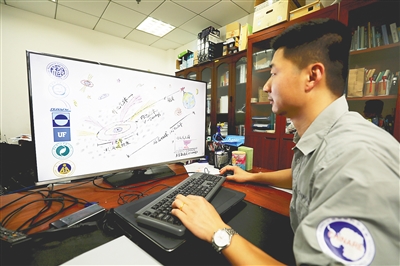 9月9日,中国极地研究中心南极天文学研究室副研究员姜鹏在介绍自己绘制的黑洞吸积盘示意图。
