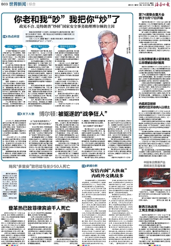 海南日报 世界新闻综合 015 2019-09-121 2019年09月12日 星期四