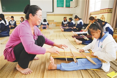 秋季学期开始,在昌江民族中学的课堂里,学校外聘的10名黎锦传承人又站上了讲台,为教室里年轻的黎族少年们教授起织锦这项黎族传统技艺。