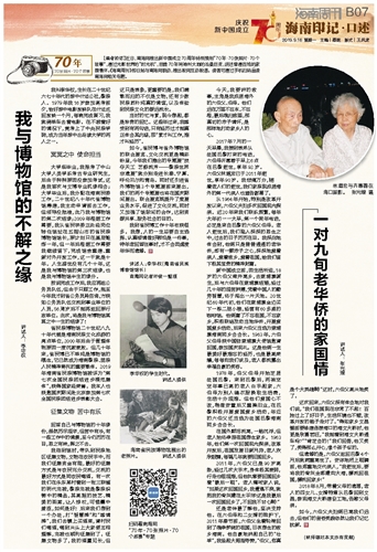| 海南日报 海南印记·口述 019 2019-09-161 2019年09月16日 星期一 |