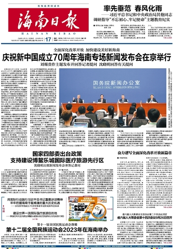 第004版:全面深化改革开放加快建设美好新海南——庆祝新中国成立70周年海南专场新闻发布会特别报道