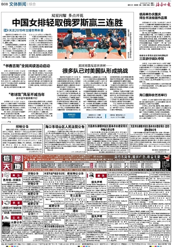 海南日报 文体新闻综合 016 2019-09-171 2019年09月17日 星期二