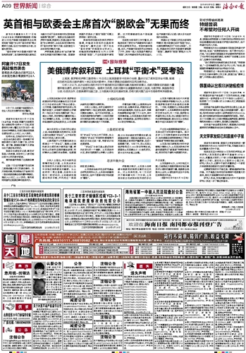 海南日报 世界新闻综合 009 2019-09-181 2019年09月18日 星期三