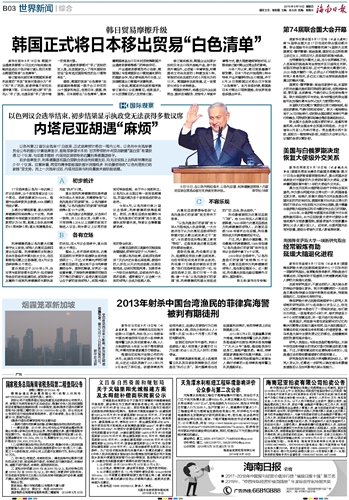 今年7月以来,韩日贸易摩擦不断发酵。日本7月初开始限制3种半导体产业关键原材料出口韩国,并于8月28日把韩国正式移出日方贸易“白色清单”。本月早些时候,韩国就日本对韩出口限制措施,向世界贸易组织提出申诉。