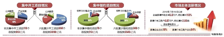 省发展改革委提供的数据显示,2018年以来,海南已先后举行六批项目集中开工和签约活动,累计开工项目664个,总投资3098亿元;累计签约项目348个,总投资3545亿元。2019年7月19日以来,全省新增市场主体5.8万户,同比增长113%。