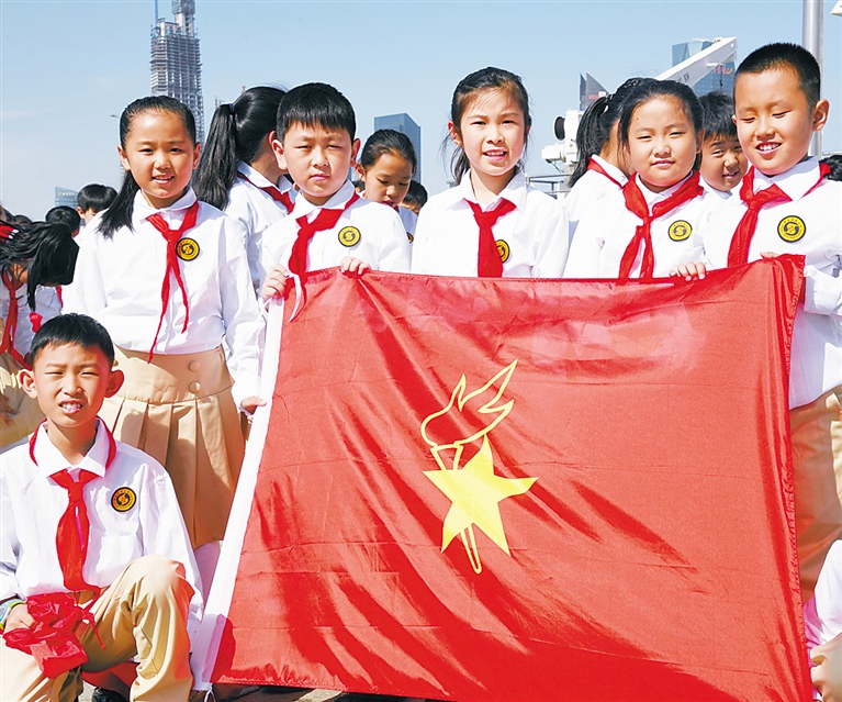 当日,青岛市少工委在青岛奥林匹克帆船中心举行“飞扬红领巾 献礼新时代”庆祝少先队建队七十周年主题活动启动仪式。活动将通过在全市少先队员中开展征文、演讲、朗诵等,激发少先队员们的自豪感与爱国情,展现少先队员们积极向上的精神风貌。 新华社记者 李紫恒 摄