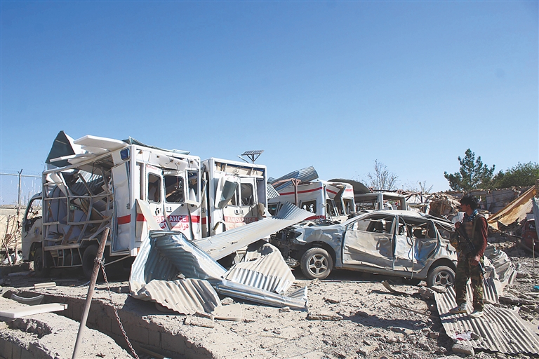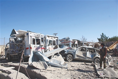 阿富汗内政部发言人纳斯拉特·拉希米19日说,阿富汗南部查布尔省首府卡拉特市当日发生一起汽车炸弹袭击事件,造成15人死亡,66人受伤。图为汽车炸弹袭击事件现场。 新华社/法新