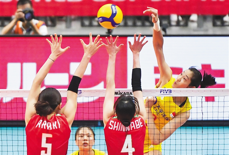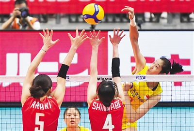 9月19日,在日本横滨举行的2019年女排世界杯赛第一阶段A组循环赛中,中国队3:0轻取日本队。