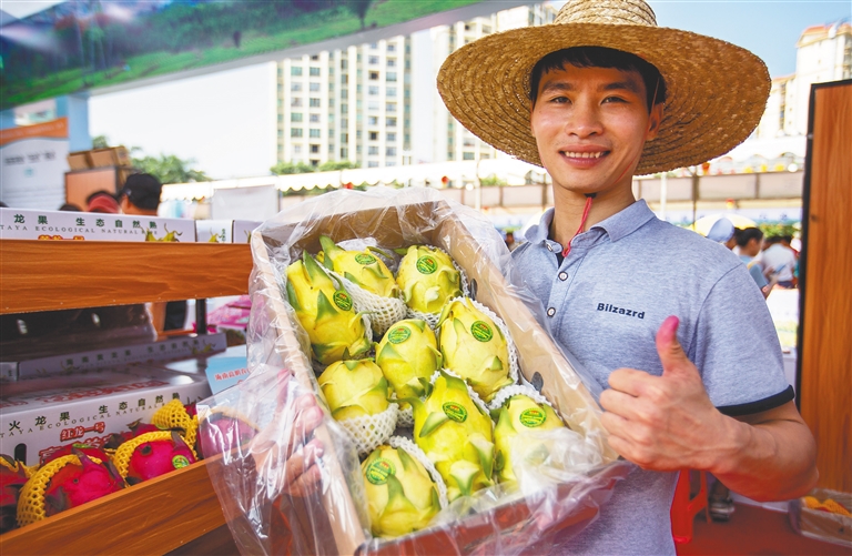 怎样让农产品“叫好又叫座”?在9月21日举行的2019年海南(乐东)农民丰收节开幕式上,央视少儿频道主持人月亮姐姐通过VCR和乐东黎族自治县四套班子领导,一起为乐东特色农产品代言。