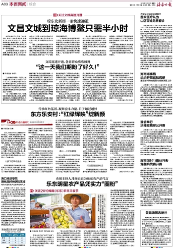 海南日报 本省新闻综合 003 2019-09-221 2019年09月22日 星期日