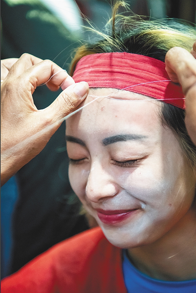 据琼山区旅文局局长王武介绍,以前在条件优渥的家庭,妇女们一般每隔一两个月就要绞面一次,普通家庭的妇女至少在过年、清明、端午、中秋等大节前“挽面”。而如今,作为一门街头手艺,绞面广受爱美一族青睐。