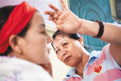 但是现在,不仅仅是年纪偏大的海南本地妇女,一些30来岁的妇女和男同胞也加入到接受绞面美容的队伍。今年32岁的陈英住在琼山区甲子镇,只要来海口市区,就会到林和姑绞面的巷子,找另外一位绞面娘绞面。而住在附近的黄文丰是一名琼剧演员,也是一名绞面“粉丝”。除了找林和姑绞面,今年43岁的他,每半年都会找林和姑的女儿,给自己拔一次白头发。