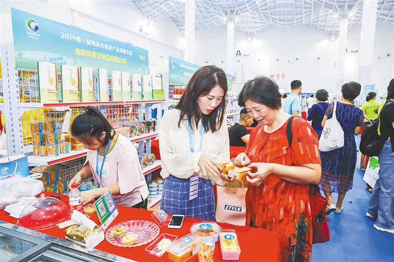 2019年第三届海南名特优产品采购大会旨在打造国内知名的融合采购、供货、物流、金融、保险等企业为一体的供应链合作平台,积极有效地把海南省品牌企业和名特优产品推向全国市场甚至是全球市场。本次大会现场共展出了近500家企业的近6000种名特优产品,涵盖了具有海南特色的深加工农产品、林产品、水产品、菌类产品、果蔬产品、肉蛋类产品、畜产品,各类食用产品、各种饮料产品、椰雕工艺品、沉香、珍珠等,产品类别全、品种多。