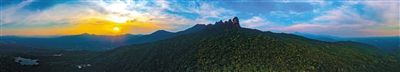 清晨,薄雾遮掩下的七仙岭主峰依旧秀丽,40年,它见证了山脚下保亭黎族苗族自治县的成长与发展,草木葳蕤的七仙岭,也体现了保亭对绿水青山严格保护。