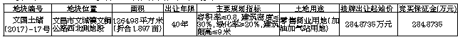 经文昌市人民政府批准,文昌市自然资源和规划局决定将位于文昌市文城镇文铜公路西北侧地段,地块编号为文国土储(2017)-17号,面积1264.98平方米(折合1.897亩)的国有建设用地使用权以挂牌方式出让。现将有关事项公告如下: