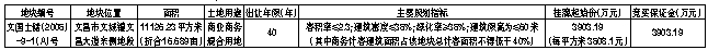 二、中华人民共和国境内外的法人、自然人或其他组织(法律另有规定者除外)均可申请参加竞买(注:失信被执行人不得参与本次竞买),申请人应单独申请竞买。本次挂牌不接受联合体竞买,不接受竞买人电话、邮寄、电子、口头报价。三、本次国有建设用地使用权挂牌出让设有底价,并按照出价最高且不低于底价者得的原则确定竞得人。四、本次挂牌出让的详细资料和具体要求,详见挂牌出让手册。申请人可于2019年9月24日至2019年10月21日到文昌市自然资源和规划局三楼土地利用管理室或海南省公共资源交易服务中心一楼受理大厅3号窗口(土地产权交易)购取挂牌出让手册和提交书面申请。五、申请人交纳竞买保证金的截止时间为2019年10月21日17时00分(以竞买保证金到账为准)。经审核,申请人按规定交纳竞买保证金,具备申请条件的,我局将在2019年10月21日17时30分前确认其竞买资格。六、本次国有建设用地使用权挂牌活动定于2019年10月14日8时00分至2019年10月23日10时00分在海南省政府会展楼二楼省公共资源交易服务中心土地交易厅进行。(2019年10月23日10时00分在海南省政府会展楼二楼省公共资源交易服务中心土地交易厅召开挂牌现场会)。七、其他需要公告的事项:(一)竞得土地后,竞得人须按照签订的《成交确认书》约定与文昌市自然资源和规划局签订《国有建设用地使用权出让合同》,按合同约定及时缴纳土地出让金。(二)本次出让宗地属商业项目用地。竞得该宗土地后,竞得人须严格按照批准的项目规划设计方案要求,以及有关部门的行业规定,在半年内动工建设项目,两年内完成项目的投资建设。(三)本次出让宗地按净地条件出让,即土地权利清晰、安置补偿落实到位、地上附着物清表、无法律经济纠纷、土地开发利用规划条件明确、符合土壤环境质量要求、具备动工开发所必需条件。竞买人应当现场踏勘出让地块,竞买人申请参加竞买的,视为对出让地块净地条件无异议。(四)土地出让成交后,必须在20个工作日内签订出让合同,合同签订后1个月内必须缴纳出让价款60%的首付款,余款要按合同约定及时缴纳。分期支付国有建设用地使用权出让价款的,分期缴纳全部土地出让金的期限不得超过1年,受让人在支付第二期及以后各期国有建设用地使用权出让价款时,同意按照支付第一期土地出让价款之日中国人民银行公布的贷款利率,向出让人支付利息。(五)按照《关于印发<海南省建设用地出让控制标准(试行)>的通知》(琼国土资规〔2018〕7号)和《关于实施产业项目发展和用地准入协议的指导意见》(琼国土资规〔2018〕8号)有关规定,本次出让宗地投资强度为不低于300万元/亩,年度产值不低于450万元/亩,年度税收不低于12万元/亩,达产年限5年,以上控制指标按规定列入《产业项目发展和用地准入协议》,属于协议内容的组成部分,竞得人在签订国有土地使用权出让合同时,一并与文昌市发展和改革委员会签订《产业项目发展和用地准入协议》。(六)竞得土地后,竞得人须在文昌注册公司进行项目开发,拟注册成立新公司进行开发建设的,申请人应在申请书中明确新公司的出资构成、成立时间等内容。如已在文昌注册具有相应土地开发资质的公司,可不再注册公司。(七)该宗地若需要实施装配式建筑,应按照装配式建筑有关规定执行。(八)竞得土地后,竞得人须按规定完善该宗地施工报建、地质、压覆矿、消防、环保等审批手续,方可动工建设。(九)本次挂牌出让事项如有变更,届时以变更公告为准。八、联系方式:联系地址:海南省文昌市文城镇白金路2号、海南省政府会展楼二楼省公共资源交易服务中心;联 系 人:周先生 李先生;联系电话:0898-63330100 65203602 31302088。查询网址:www.landchina.com;http://zw.hainan.gov.cn/ggzy/;http://lr.hainan.gov.cn