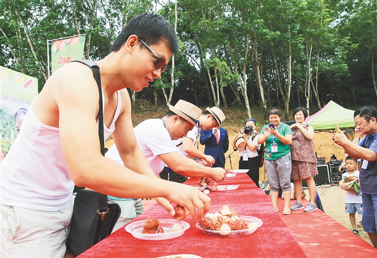 种植面积达到2.3万亩的红毛丹,更将品牌的效应延伸到了农业产业之外。保亭连续多年举办乡村旅游红毛丹采摘季活动,以红毛丹产业为支点,全面整合采摘、餐饮、住宿、景区、温泉酒店等资源,助推果园基地信息化、电商化建设,拓宽果园销售渠道, “互联网+旅游+农业”的旅游产业链条不断延伸。