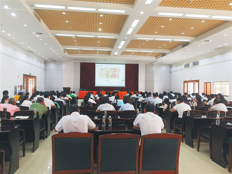 新版人民币如何识别?为确保发行前辖内各银行业金融机构现金从业人员能掌握新版人民币防伪特征,人行海口中心支行组织做好现金从业人员鉴别培训工作。人行海口中心支行一方面率先培训人民银行各分支机构反假货币业务骨干,由其组成宣讲团分赴各市县辖内地方性金融机构进行培训;另一方面,直接举办辅导员培训班,培训辖内银行业金融机构师资,由其对本单位现金从业人员开展培训。经过行业共同努力,共对辖内8767名现金从业人员开展培训。培训期间,人行海口中心支行对已完成培训人员进行检查,确保从业人员“专业过硬”。