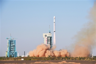 9月25日8时54分,我国在酒泉卫星发射中心用长征二号丁运载火箭,成功将云海一号02星发射升空,卫星顺利进入预定轨道,任务获得圆满成功。 新华社发(汪江波 摄)