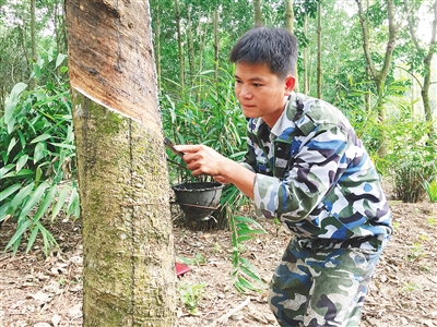此前,符忠顺夫妇因缺乏产业发展资金以及三个子女教育开销较大致贫,自2014年起被纳为建档立卡贫困户。起初,当扶贫干部进村入户找到符忠顺沟通如何更好地发展扶贫产业事宜时,他要么躲避,要么搪塞。毕竟,多年来生活在相对偏远闭塞的乡村,让他“只要管护好自家那400多株橡胶,一家人的温饱就有了着落”的思想根深蒂固。然而,刚好是那几年,胶水收购价格相对低迷,符忠顺一家人有时入不敷出,只能找亲朋好友借钱过日子。
