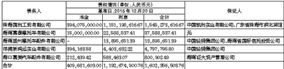 债权清单如下表所示。债权本息金额基准日为2015年12月20日,2015年12月20日之后产生的利息、罚息和违约金等相关权益,以及与债权相关的从权利亦在本次催收范围内: