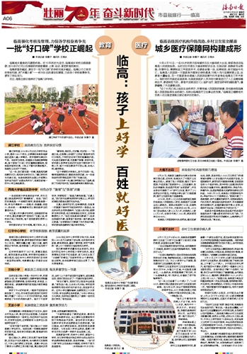 临高新盈中学、和舍中心学校、新盈中心学校、东江学校等农村地区学校也因出色的办学成绩获得临高县委、县政府表彰。一批“好口碑”学校正在临高乡村崛起,好学校不再只是城里有。(本报临城9月25日电)