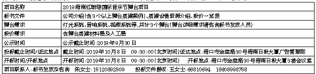 2019海南红珊瑚国际音乐节舞台项目招标公告