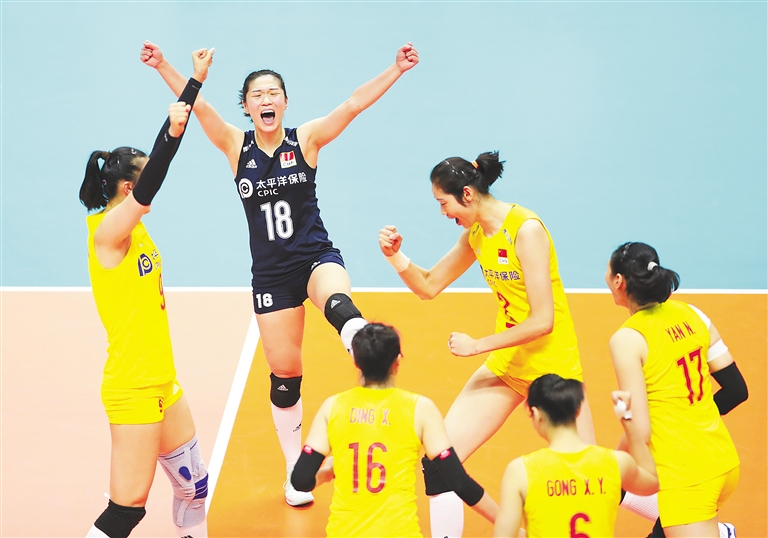 9月28日,中国女排在大阪市中央体育馆以3比0轻取塞尔维亚队,以十连胜的傲人战绩提前锁定2019年女排世界杯冠军。新华社记者 杜潇逸 摄 (相关报道见A16版)