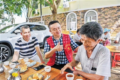 通过组织辖区40多名老党员、乡贤、退休人员和基层工作人员组成宣讲志愿服务团队,琼山区已分别在红旗、云龙、国兴、府城、凤翔、滨江6个镇(街)成立“益·老爸茶”宣讲队。他们以老爸茶店、公庙或房前屋后、田间地头等村民聚集场所为阵地,向村居民开展新时代文明实践宣讲活动,成功实现打通宣传群众、教育群众、关心群众、服务群众的“最后一公里”目标。