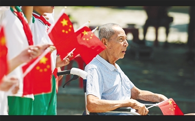 即使是95岁的老阿公陈伟珍,也尽量参加每一场升旗仪式。“早几年还可以走路的时候,公公就扶着代步架去看升国旗,他跟我们说,听到国歌,心里就高兴!”陈伟珍的儿媳说。
