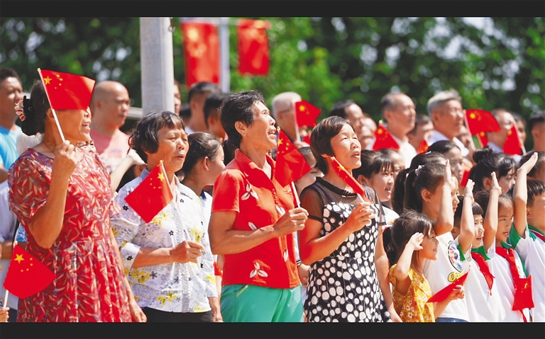 “升国旗在我心中不是简单的仪式,而是对革命先烈的一种致敬,我们能有今天和平的生活,要懂得感恩。”如今在镇上经商的年轻村民陈泽莱,也成了升旗仪式中的老面孔。