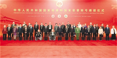 习近平指出,今天受表彰的国家勋章和国家荣誉称号获得者,是千千万万为党和人民事业作出贡献的杰出人士的代表。他们身上生动体现了中华民族精神和社会主义核心价值观,他们的事迹和贡献将永远写在共和国史册上。