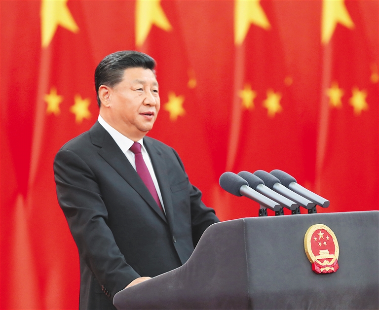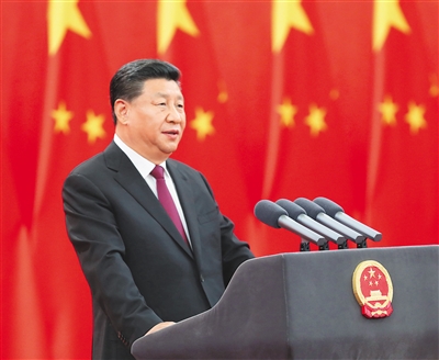 在全场热烈的掌声中,习近平发表重要讲话。他首先代表党中央、全国人大、国务院和中央军委,向今天获得共和国勋章和国家荣誉称号的英雄模范、获得友谊勋章的国际友人表示热烈的祝贺、致以崇高的敬意。