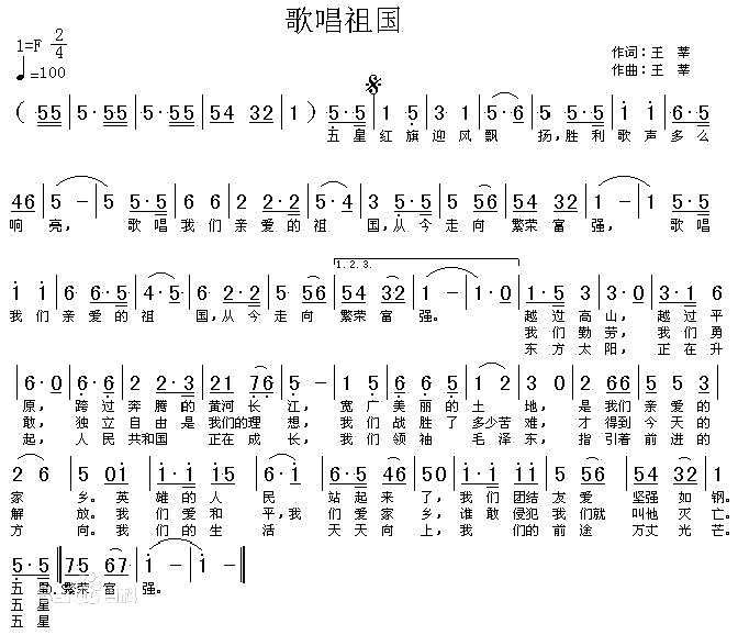 1951年,周恩来总理签署了中央人民政府令,要求在全国广泛传唱《歌唱祖国》,不久后,年轻的王莘又被邀请参加全国政协会议,在会上,王莘见到了他日夜思念的毛主席,毛主席不但盛赞《歌唱祖国》“这首歌好”,还送给王莘一套签好了字的《毛泽东选集》留念。《歌唱祖国》和国歌一样,是唤醒华人的号角,只要音乐一响起,起立、脱帽、在心中默唱,已经成为很多人的习惯,在《歌唱祖国》的激励下,各行各业都在自己的岗位上书写着一曲献给祖国的颂歌。