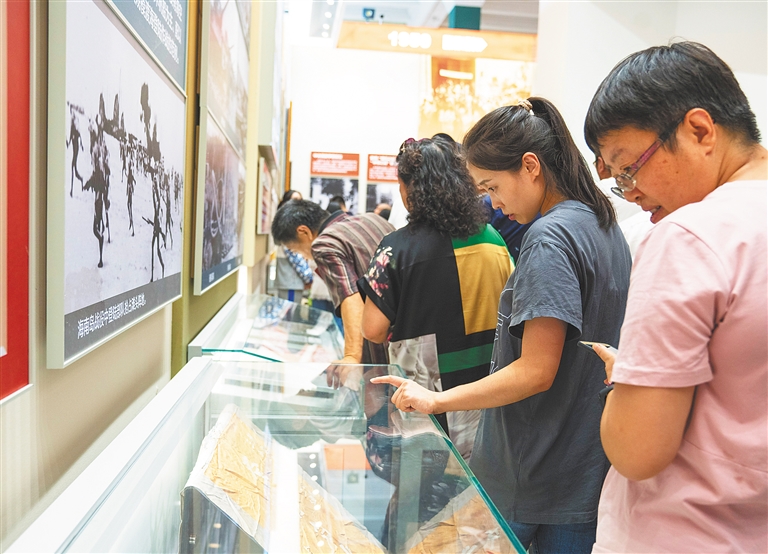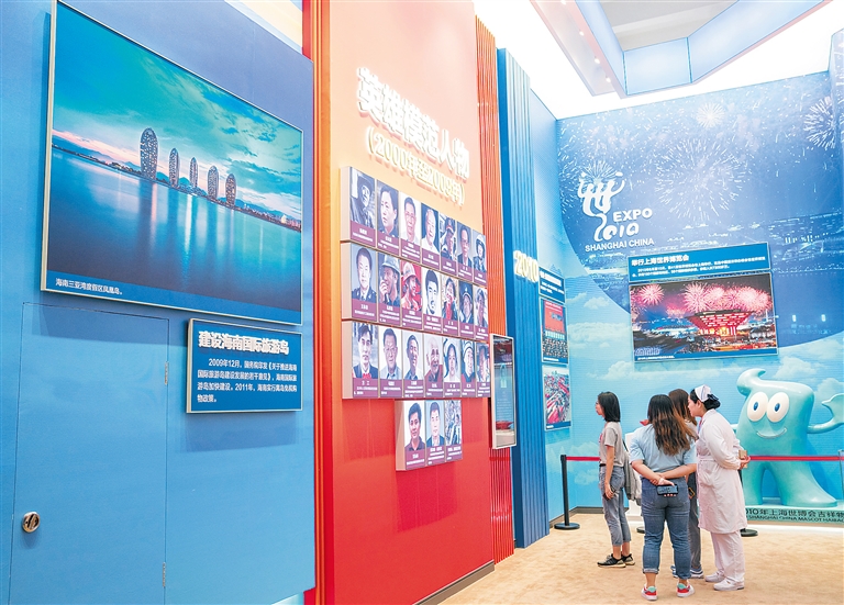 9月29日,海南日报记者来到成就展现场,展览中,多处与海南紧密相关的内容令人驻足:从1950年解放海南岛,到1988年建省办经济特区,再到2018年党中央决定支持海南全岛建设自由贸易试验区,逐步探索、稳步推进中国特色自由贸易港建设,当中国进入了新时代,海南——中国面积最大的经济特区,扛起使命与担当,以全面深化改革开放为中国发展写下亮眼注脚。