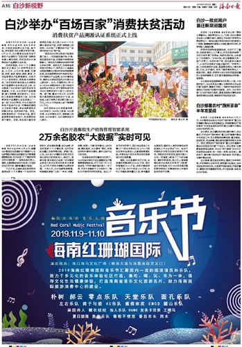 | 海南日报 白沙新视野 016 2019-09-301 2019年09月30日 星期一 |