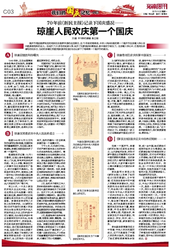 | 海南日报 我们的国庆记忆·纪事 027 2019-09-301 2019年09月30日 星期一 |