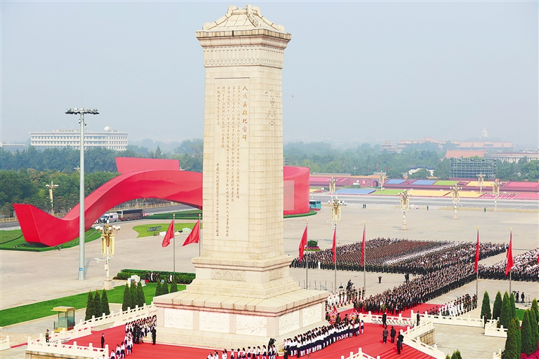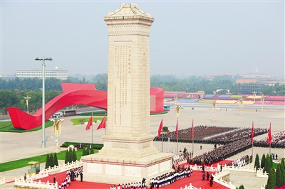 庄严的天安门广场,五星红旗猎猎飘扬。人民英雄纪念碑上,荡气回肠的碑文宣示着一个民族最郑重的铭记——