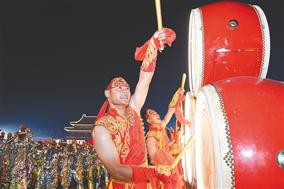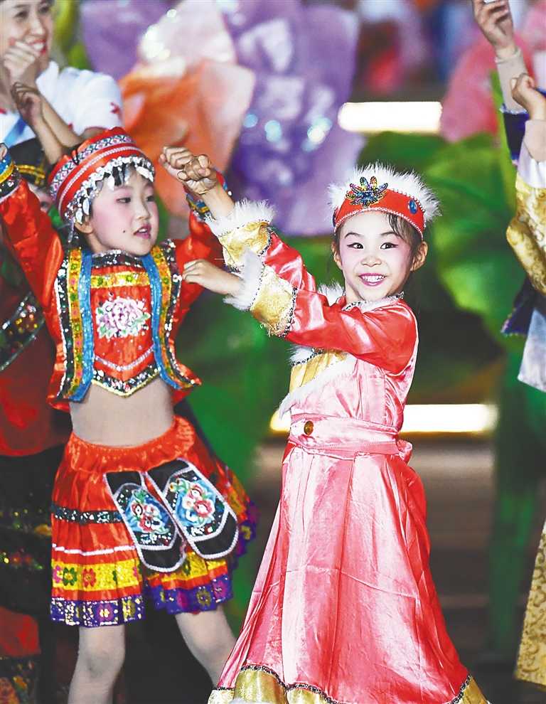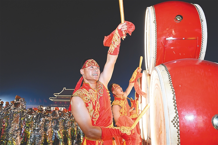 我们用舞蹈庆祝——威风锣鼓、安塞腰鼓、藏族的热巴鼓、维吾尔族的铃鼓、朝鲜族的长鼓、壮族的铜鼓……鼓声阵阵、舞姿蹁跹,喜庆的氛围愈发浓郁。